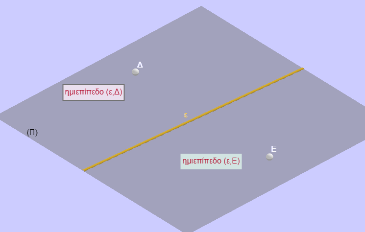 Σχεδίαση Ημιεπιπέδων: Σχεδιάστε ένα επίπεδο \(\pi\) και μια ευθεία \(\epsilon\) εντός αυτού. Ονομάστε τα δύο ημιεπίπεδα που προκύπτουν.