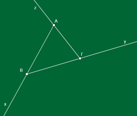 Σχετικές Θέσεις: Σχεδιάστε τρεις ευθείες \(\epsilon, \lambda, \sigma\) που να μην είναι παράλληλες ανά δύο και να μην διέρχονται και οι τρεις από το ίδιο σημείο. Πόσα σημεία τομής προκύπτουν; (3 σημεία).