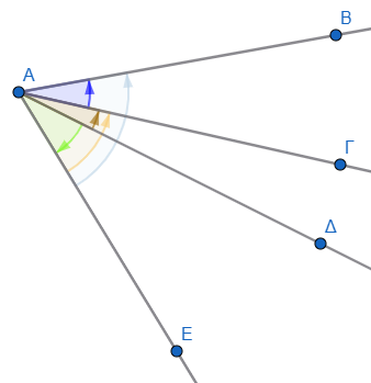 | Ευθεία | \(\phi = 180^\circ\) | Οι πλευρές είναι αντικείμενες ημιευθείες. |