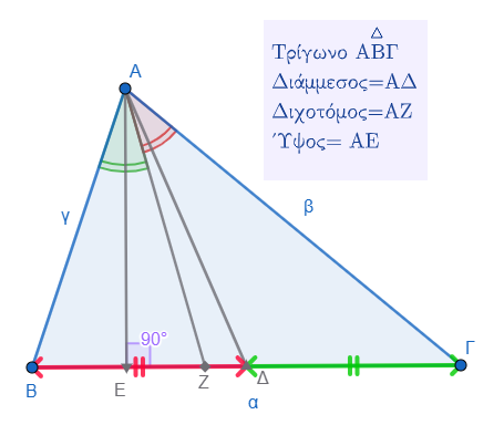 * Διάμεσος: Το ευθύγραμμο τμήμα που ενώνει μια κορυφή με το μέσο της απέναντι πλευράς.